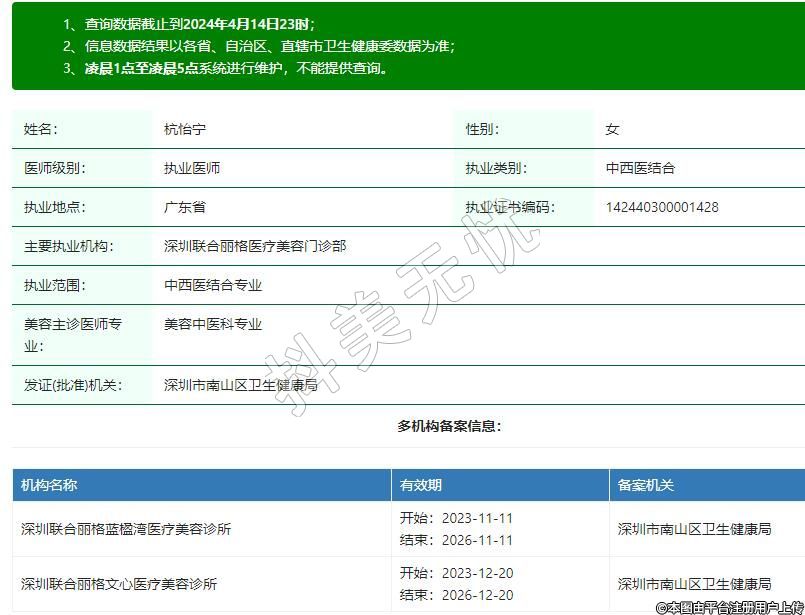 主要執(zhí)業(yè)機構:深圳聯(lián)合麗格醫(yī)療美容門診部