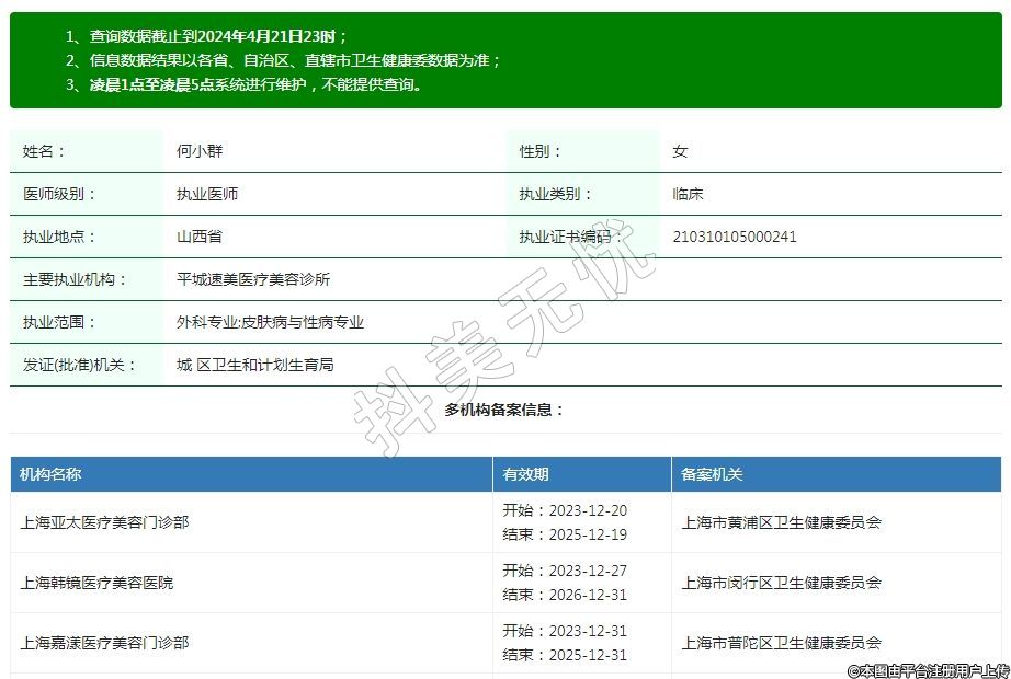 上海大嘉醫(yī)療美容執(zhí)業(yè)醫(yī)師