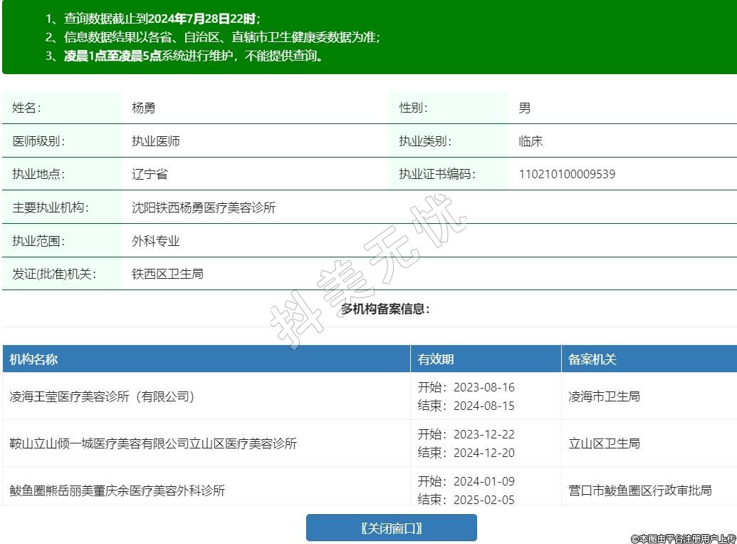 主要執(zhí)業(yè)機構(gòu):沈陽鐵西楊勇醫(yī)療美容診所