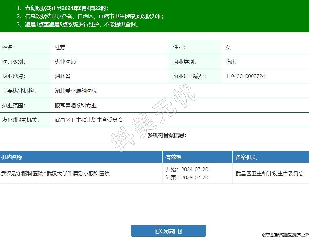 主要執(zhí)業(yè)機(jī)構(gòu):湖北愛爾眼科醫(yī)院