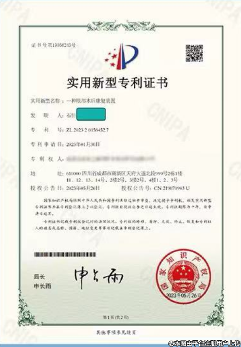 創(chuàng)研1項眼部國家實(shí)用新型專利技術(shù)