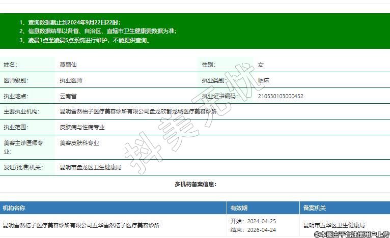 主要執(zhí)業(yè)機(jī)構(gòu):昆明雪然柚子醫(yī)療美容診所有限公司盤龍欣都龍城醫(yī)療美容診所