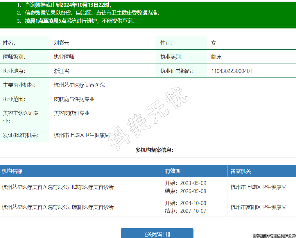 主要執(zhí)業(yè)機(jī)構(gòu):杭州藝星醫(yī)療美容醫(yī)院