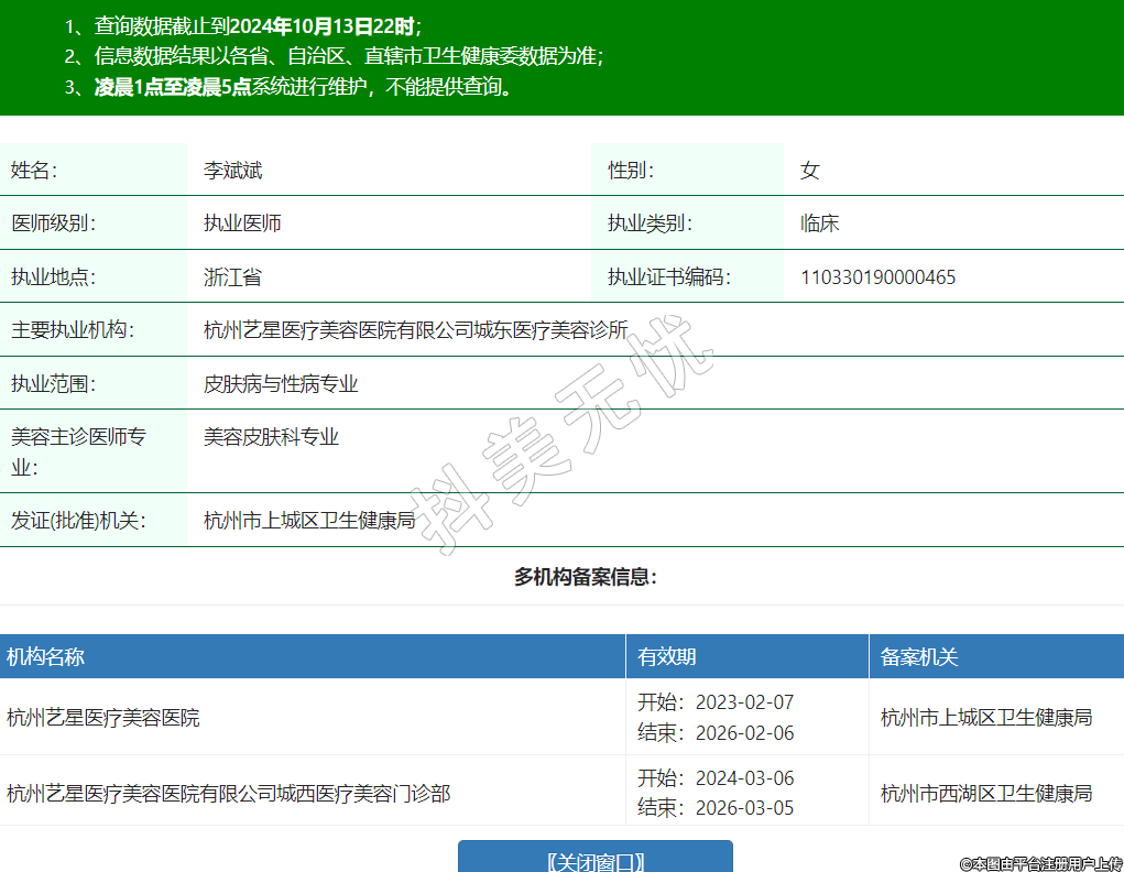 機(jī)構(gòu)名稱:杭州藝星醫(yī)療美容醫(yī)院有限公司城西醫(yī)療美容門診部