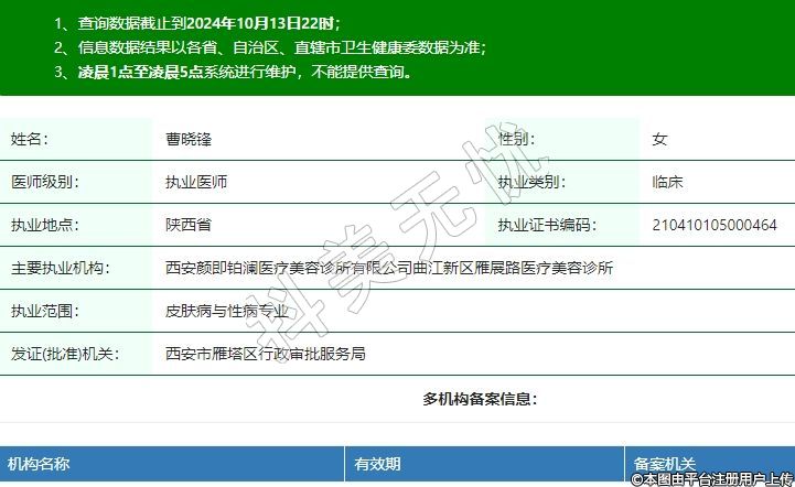 主要執(zhí)業(yè)機(jī)構(gòu):西安顏即鉑瀾醫(yī)療美容診所有限公司曲江新區(qū)雁展路醫(yī)療美容診所