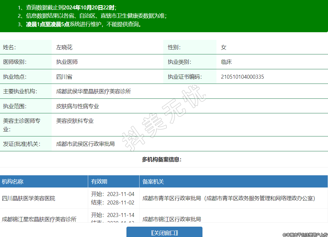 主要執(zhí)業(yè)機構(gòu):成都武侯華星晶膚醫(yī)療美容診所
