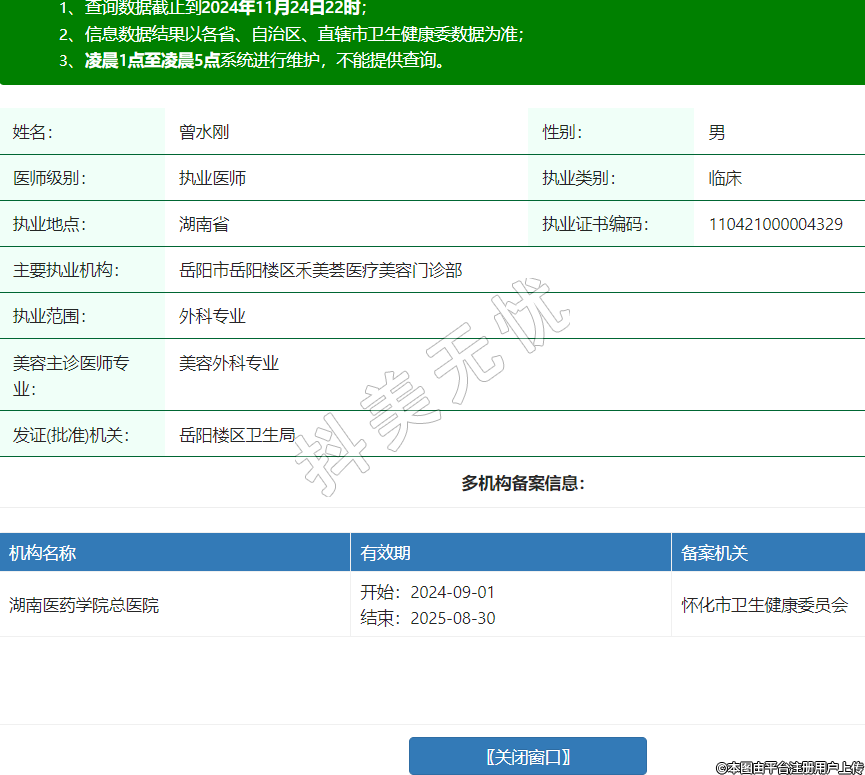 主要執(zhí)業(yè)機(jī)構(gòu):岳陽市岳陽樓區(qū)禾美薈醫(yī)療美容門診部