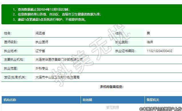主要執(zhí)業(yè)機(jī)構(gòu):大連芳華醫(yī)療美容門診部有限公司