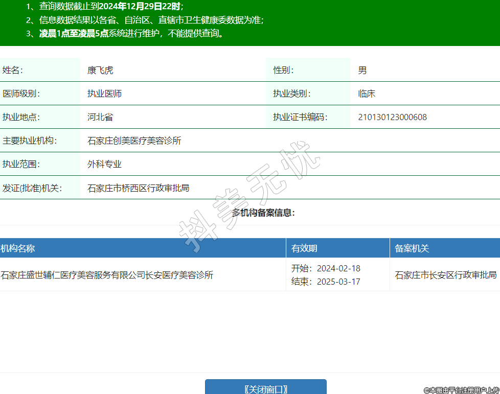 機(jī)構(gòu)名稱:石家莊盛世輔仁醫(yī)療美容服務(wù)有限公司長安醫(yī)療美容診所有效期: