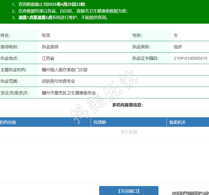 姓名:張洛性別:女醫(yī)師級別:執(zhí)業(yè)醫(yī)師執(zhí)業(yè)類別:臨床執(zhí)業(yè)地點:江西省執(zhí)業(yè)證書編碼:210410100005610主要執(zhí)業(yè)機構:贛州儷人醫(yī)療美容門診部執(zhí)業(yè)范圍:皮膚病與性病專業(yè) -