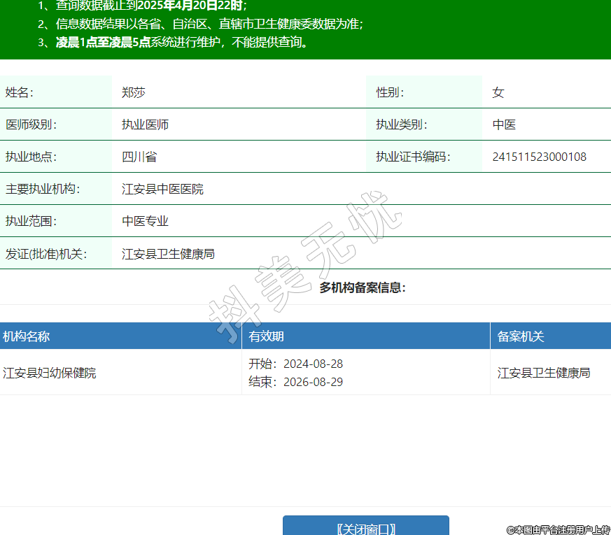 姓名:鄭莎性別:女醫(yī)師級(jí)別:執(zhí)業(yè)醫(yī)師執(zhí)業(yè)類別:中醫(yī)執(zhí)業(yè)地點(diǎn):四川省執(zhí)業(yè)證書(shū)編碼:241511523000108主要執(zhí)業(yè)機(jī)構(gòu):江安縣中醫(yī)醫(yī)院執(zhí)業(yè)范圍:中醫(yī)專業(yè)發(fā)證(批準(zhǔn))機(jī)關(guān):江安縣衛(wèi)生健康局多機(jī)構(gòu)備案信息:機(jī)構(gòu)名稱 有效期 備案機(jī)關(guān) 江安縣婦幼保健院 開(kāi)始:2024-08-28結(jié)束:2026-08-29江安縣衛(wèi)生健康局 -
