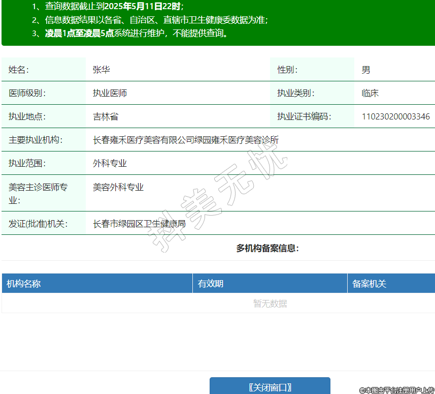 姓名:張華性別:男醫(yī)師級(jí)別:執(zhí)業(yè)醫(yī)師執(zhí)業(yè)類別:臨床執(zhí)業(yè)地點(diǎn):吉林省執(zhí)業(yè)證書編碼:110230200003346主要執(zhí)業(yè)機(jī)構(gòu):長(zhǎng)春雍禾醫(yī)療美容有限公司綠園雍禾醫(yī)療美容診所執(zhí)業(yè)范圍:外科專業(yè)美容主診醫(yī)師專業(yè):美容外科專業(yè)發(fā)證(批準(zhǔn))機(jī)關(guān):長(zhǎng)春市綠園區(qū)衛(wèi)生健康局 -