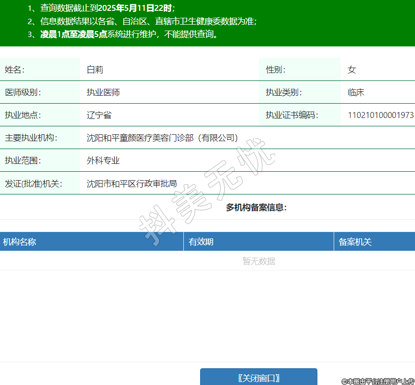 姓名:白莉性別:女醫(yī)師級(jí)別:執(zhí)業(yè)醫(yī)師執(zhí)業(yè)類別:臨床執(zhí)業(yè)地點(diǎn):遼寧省執(zhí)業(yè)證書編碼:110210100001973主要執(zhí)業(yè)機(jī)構(gòu):沈陽(yáng)和平童顏醫(yī)療美容門診部(有限公司)執(zhí)業(yè)范圍:外科專業(yè)發(fā)證(批準(zhǔn))機(jī)關(guān):沈陽(yáng)市和平區(qū)行政審批局 -