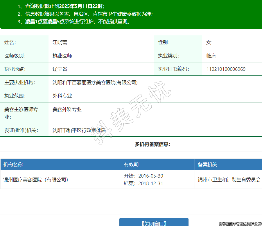 姓名:汪曉蕾性別:女醫(yī)師級別:執(zhí)業(yè)醫(yī)師執(zhí)業(yè)類別:臨床執(zhí)業(yè)地點:遼寧省執(zhí)業(yè)證書編碼:110210100006969主要執(zhí)業(yè)機構(gòu):沈陽和平百嘉麗醫(yī)療美容醫(yī)院(有限公司)執(zhí)業(yè)范圍:外科專業(yè)美容主診醫(yī)師專業(yè):美容外科專業(yè)發(fā)證(批準(zhǔn))機關(guān):沈陽市和平區(qū)行政審批局多機構(gòu)備案信息:機構(gòu)名稱 有效期 備案機關(guān) 錦州醫(yī)療美容醫(yī)院(有限公司) 開始:2016-05-30結(jié)束:2018-12-31錦州市衛(wèi)生和計劃生育委員會 -