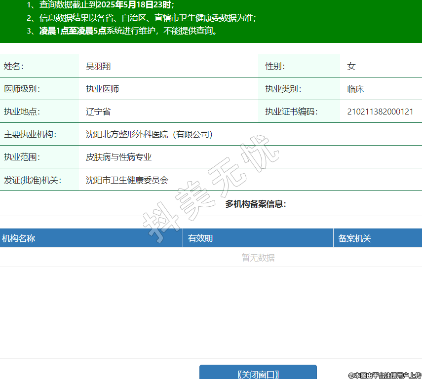 姓名:吳羽翔性別:女醫(yī)師級別:執(zhí)業(yè)醫(yī)師執(zhí)業(yè)類別:臨床執(zhí)業(yè)地點:遼寧省執(zhí)業(yè)證書編碼:210211382000121主要執(zhí)業(yè)機構(gòu):沈陽北方整形外科醫(yī)院(有限公司)執(zhí)業(yè)范圍:皮膚病與性病專業(yè)發(fā)證(批準)機關(guān):沈陽市衛(wèi)生健康委員會 -