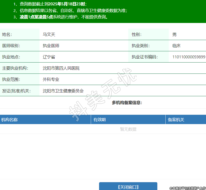 姓名:馬文天性別:男醫(yī)師級(jí)別:執(zhí)業(yè)醫(yī)師執(zhí)業(yè)類(lèi)別:臨床執(zhí)業(yè)地點(diǎn):遼寧省執(zhí)業(yè)證書(shū)編碼:110110000059899主要執(zhí)業(yè)機(jī)構(gòu):沈陽(yáng)市第四人民醫(yī)院執(zhí)業(yè)范圍:外科專(zhuān)業(yè)發(fā)證(批準(zhǔn))機(jī)關(guān):沈陽(yáng)市衛(wèi)生健康委員會(huì) -