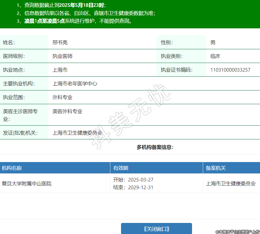 姓名:邢書亮性別:男醫(yī)師級別:執(zhí)業(yè)醫(yī)師執(zhí)業(yè)類別:臨床執(zhí)業(yè)地點(diǎn):上海市執(zhí)業(yè)證書編碼:110310000033257主要執(zhí)業(yè)機(jī)構(gòu):上海市老年醫(yī)學(xué)中心執(zhí)業(yè)范圍:外科專業(yè)美容主診醫(yī)師專業(yè):美容外科專業(yè)發(fā)證(批準(zhǔn))機(jī)關(guān):上海市衛(wèi)生健康委員會(huì)多機(jī)構(gòu)備案信息:機(jī)構(gòu)名稱 有效期 備案機(jī)關(guān) 復(fù)旦大學(xué)附屬中山醫(yī)院 開始:2025-03-27結(jié)束:2029-12-31上海市衛(wèi)生健康委員會(huì) -