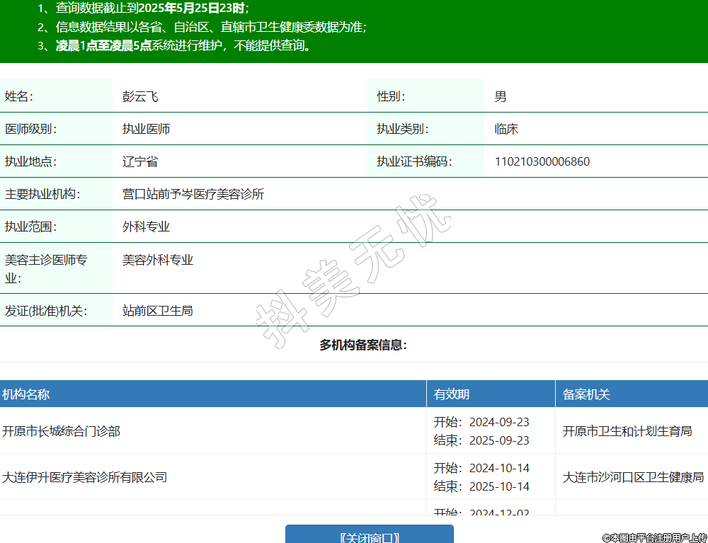 機(jī)構(gòu)名稱 有效期 備案機(jī)關(guān) 開原市長城綜合門診部 開始:2024-09-23結(jié)束:2025-09-23開原市衛(wèi)生和計(jì)劃生育局 大連伊升醫(yī)療美容診所有限公司 開始:2024-10-14結(jié)束:2025-10-14大連市沙河口區(qū)衛(wèi)生健康局 大連銳斯醫(yī)療美容診所有限公司 開始:2024-12-02結(jié)束:2025-12-01大連市沙河口區(qū)衛(wèi)生健康局 大連初禾醫(yī)美綜合門診部有限公司 開始:2025-03-24結(jié)束:2028-03-31莊河市衛(wèi)生健康局 沈陽澳紫汣美醫(yī)療管理有限公司渾南臨波路醫(yī)療美容診所(分公司) 開始:2025-04-21結(jié)束:2028-04-29沈陽市渾南區(qū)衛(wèi)生健康局 -
