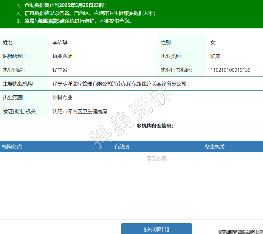 姓名:李潔琪性別:女醫(yī)師級別:執(zhí)業(yè)醫(yī)師執(zhí)業(yè)類別:臨床執(zhí)業(yè)地點(diǎn):遼寧省執(zhí)業(yè)證書編碼:110210100019139主要執(zhí)業(yè)機(jī)構(gòu):遼寧明洋醫(yī)療管理有限公司渾南東陵東路醫(yī)療美容診所分公司執(zhí)業(yè)范圍:外科專業(yè)發(fā)證(批準(zhǔn))機(jī)關(guān):沈陽市渾南區(qū)衛(wèi)生健康局 -