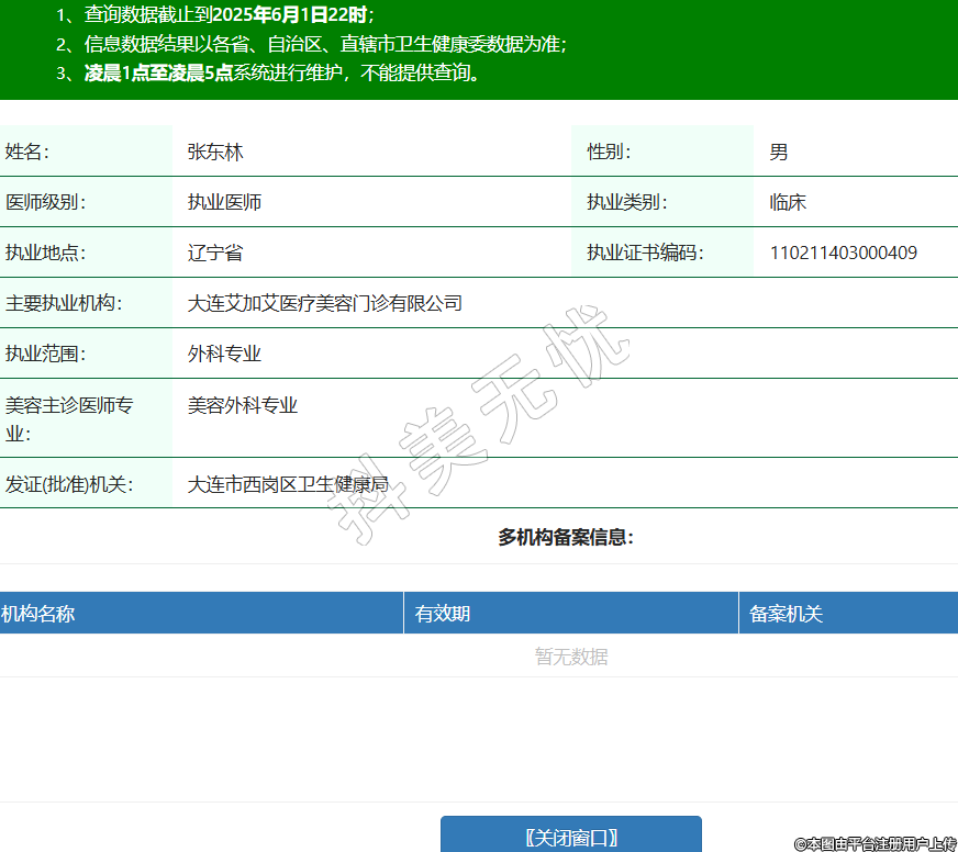 姓名:張東林性別:男醫(yī)師級別:執(zhí)業(yè)醫(yī)師執(zhí)業(yè)類別:臨床執(zhí)業(yè)地點:遼寧省執(zhí)業(yè)證書編碼:110211403000409主要執(zhí)業(yè)機構:大連艾加艾醫(yī)療美容門診有限公司執(zhí)業(yè)范圍:外科專業(yè)美容主診醫(yī)師專業(yè):美容外科專業(yè)發(fā)證(批準)機關:大連市西崗區(qū)衛(wèi)生健康局 -