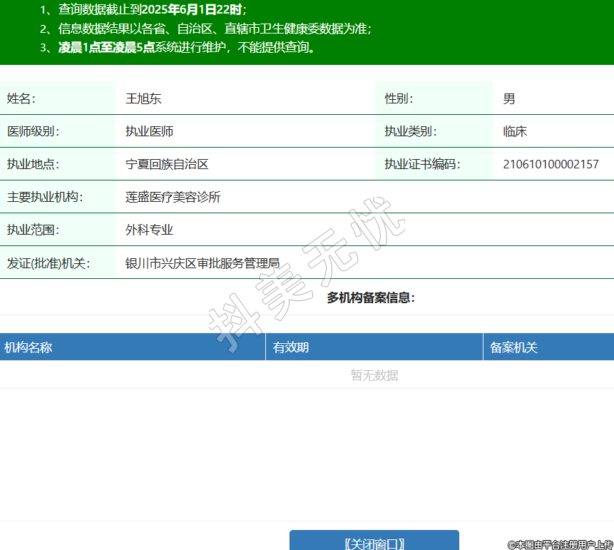 姓名:王旭東性別:男醫(yī)師級別:執(zhí)業(yè)醫(yī)師執(zhí)業(yè)類別:臨床執(zhí)業(yè)地點:寧夏回族自治區(qū)執(zhí)業(yè)證書編碼:210610100002157主要執(zhí)業(yè)機構(gòu):蓮盛醫(yī)療美容診所執(zhí)業(yè)范圍:外科專業(yè)發(fā)證(批準(zhǔn))機關(guān):銀川市興慶區(qū)審批服務(wù)管理局