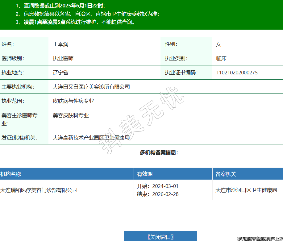 姓名:王卓潤(rùn)性別:女醫(yī)師級(jí)別:執(zhí)業(yè)醫(yī)師執(zhí)業(yè)類別:臨床執(zhí)業(yè)地點(diǎn):遼寧省執(zhí)業(yè)證書編碼:110210202000275主要執(zhí)業(yè)機(jī)構(gòu):大連白又白醫(yī)療美容診所有限公司執(zhí)業(yè)范圍:皮膚病與性病專業(yè)美容主診醫(yī)師專業(yè):美容皮膚科專業(yè)發(fā)證(批準(zhǔn))機(jī)關(guān):大連高新技術(shù)產(chǎn)業(yè)園區(qū)衛(wèi)生健康局多機(jī)構(gòu)備案信息:機(jī)構(gòu)名稱 有效期 備案機(jī)關(guān) 大連瑞和醫(yī)療美容門診部有限公司 開(kāi)始:2024-03-01結(jié)束:2026-02-28大連市沙河口區(qū)衛(wèi)生健康局 -