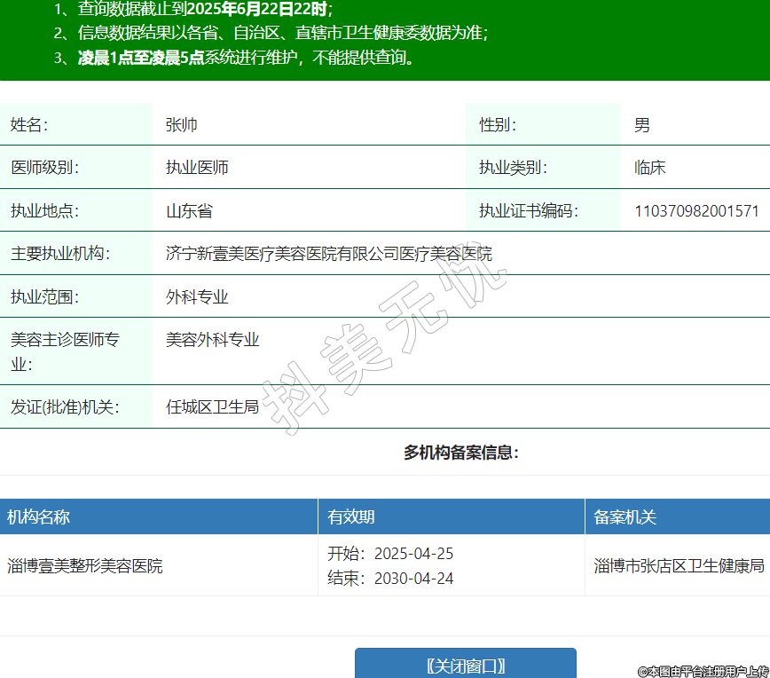 姓名:張帥性別:男醫(yī)師級別:執(zhí)業(yè)醫(yī)師執(zhí)業(yè)類別:臨床執(zhí)業(yè)地點:山東省執(zhí)業(yè)證書編碼:110370982001571主要執(zhí)業(yè)機構(gòu):濟寧新壹美醫(yī)療美容醫(yī)院有限公司醫(yī)療美容醫(yī)院執(zhí)業(yè)范圍:外科專業(yè)美容主診醫(yī)師專業(yè):美容外科專業(yè)發(fā)證(批準)機關(guān):任城區(qū)衛(wèi)生局多機構(gòu)備案信息:機構(gòu)名稱 有效期 備案機關(guān) 淄博壹美整形美容醫(yī)院 開始:2025-04-25結(jié)束:2030-04-24淄博市張店區(qū)衛(wèi)生健康局 -