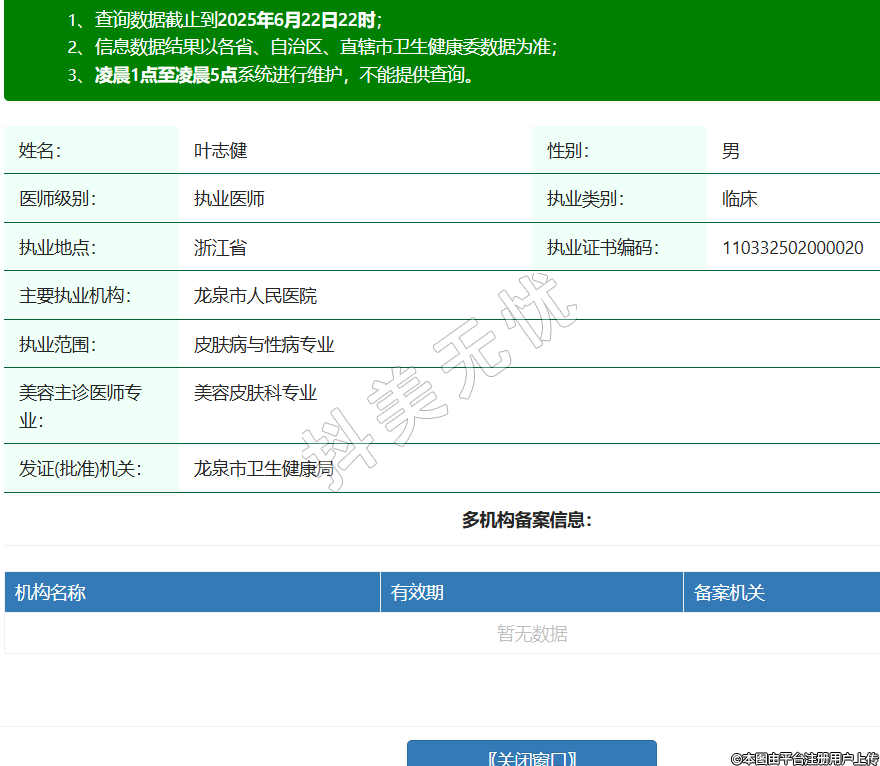 姓名:葉志健性別:男醫(yī)師級別:執(zhí)業(yè)醫(yī)師執(zhí)業(yè)類別:臨床執(zhí)業(yè)地點(diǎn):浙江省執(zhí)業(yè)證書編碼:110332502000020主要執(zhí)業(yè)機(jī)構(gòu):龍泉市人民醫(yī)院執(zhí)業(yè)范圍:皮膚病與性病專業(yè)美容主診醫(yī)師專業(yè):美容皮膚科專業(yè)發(fā)證(批準(zhǔn))機(jī)關(guān):龍泉市衛(wèi)生健康局
