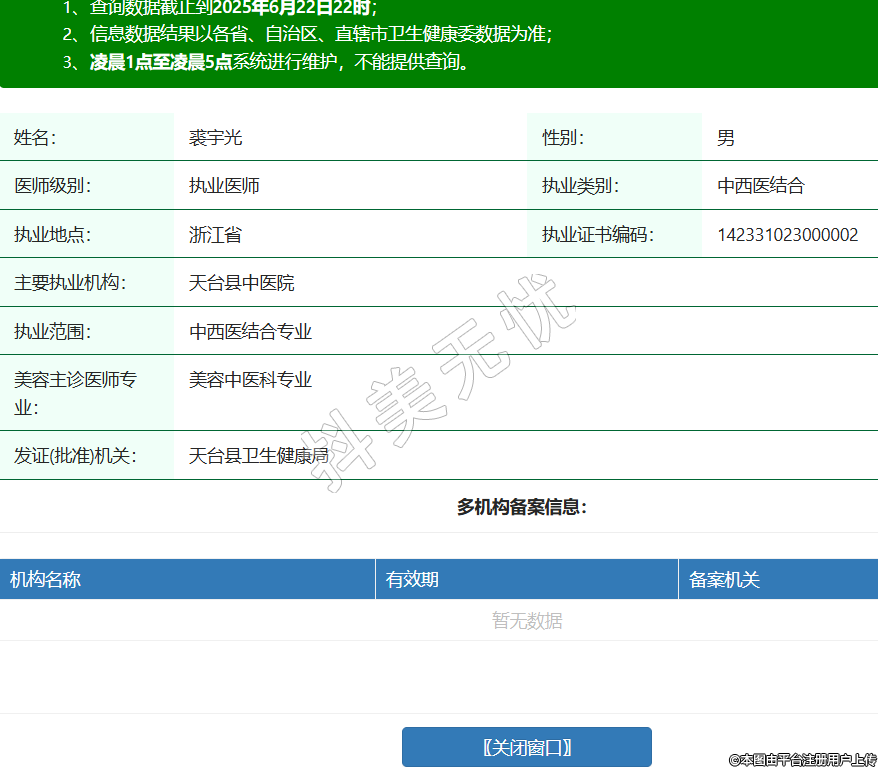 姓名:裘宇光性別:男醫(yī)師級別:執(zhí)業(yè)醫(yī)師執(zhí)業(yè)類別:中西醫(yī)結(jié)合執(zhí)業(yè)地點:浙江省執(zhí)業(yè)證書編碼:142331023000002主要執(zhí)業(yè)機構(gòu):天臺縣中醫(yī)院執(zhí)業(yè)范圍:中西醫(yī)結(jié)合專業(yè)美容主診醫(yī)師專業(yè):美容中醫(yī)科專業(yè)發(fā)證(批準(zhǔn))機關(guān):天臺縣衛(wèi)生健康局 -