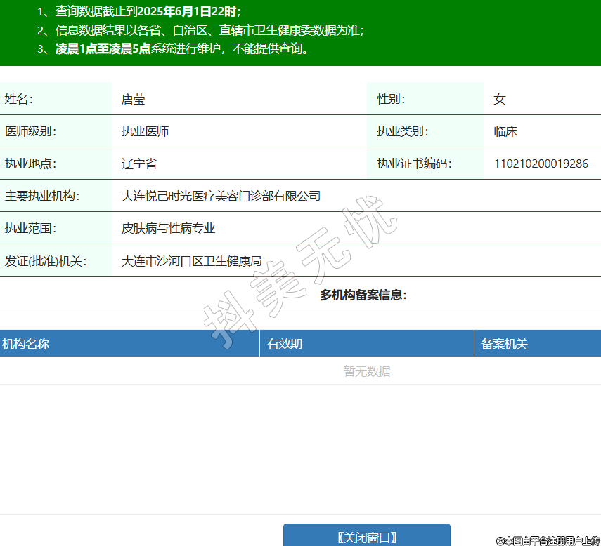 姓名:唐瑩性別:女醫(yī)師級別:執(zhí)業(yè)醫(yī)師執(zhí)業(yè)類別:臨床執(zhí)業(yè)地點:遼寧省執(zhí)業(yè)證書編碼:110210200019286主要執(zhí)業(yè)機構(gòu):大連悅己時光醫(yī)療美容門診部有限公司執(zhí)業(yè)范圍:皮膚病與性病專業(yè)發(fā)證(批準)機關(guān):大連市沙河口區(qū)衛(wèi)生健康局 -