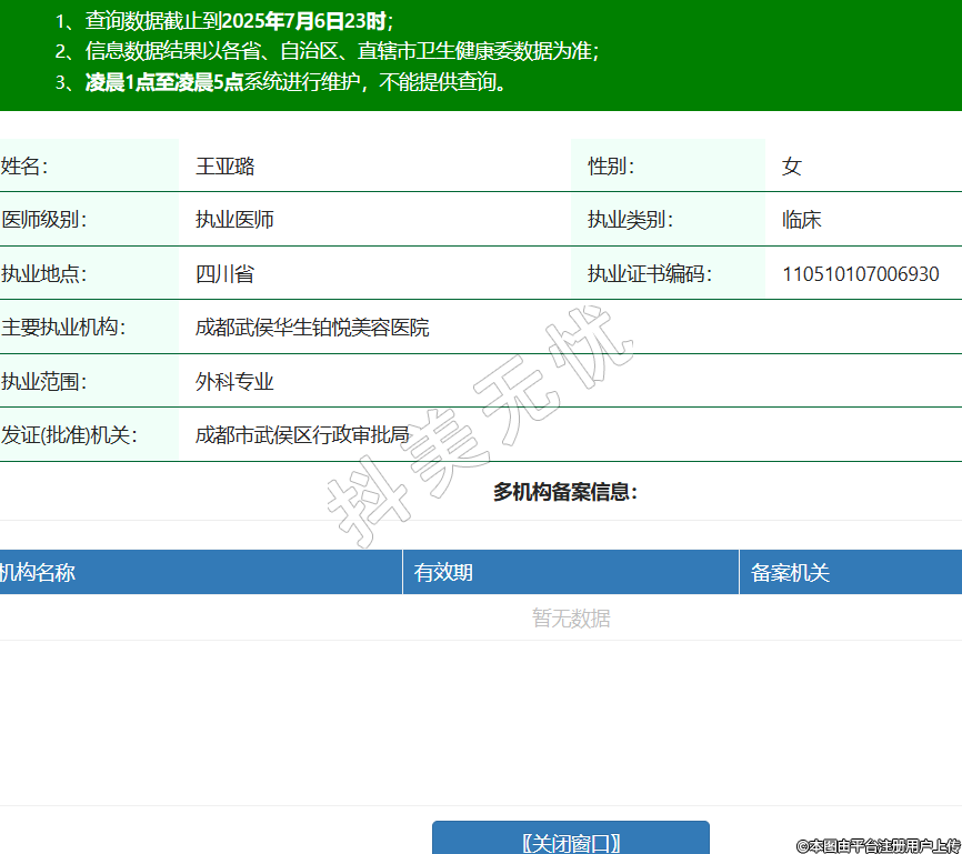 姓名:王亞璐性別:女醫(yī)師級別:執(zhí)業(yè)醫(yī)師執(zhí)業(yè)類別:臨床執(zhí)業(yè)地點:四川省執(zhí)業(yè)證書編碼:110510107006930主要執(zhí)業(yè)機構(gòu):成都武侯華生鉑悅美容醫(yī)院執(zhí)業(yè)范圍:外科專業(yè)發(fā)證(批準(zhǔn))機關(guān):成都市武侯區(qū)行政審批局 -