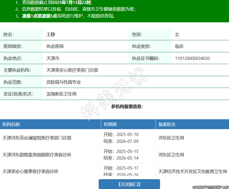 機構名稱 有效期 備案機關 天津河東菲絲瀾璽悅醫(yī)療美容門診部 開始:2025-05-10結束:2026-07-09河東區(qū)衛(wèi)生局 天津河東甜橙盈美麗顏醫(yī)療美容診所 開始:2025-05-15結束:2026-05-14河東區(qū)衛(wèi)生局 天津美安心雅泰醫(yī)療美容診所 開始:2025-05-17結束:2026-05-16天津經(jīng)濟技術開發(fā)區(qū)文化教育衛(wèi)生局 天津河東伊頌璽悅醫(yī)療美容門診部 開始:2025-06-17結束:2026-06-16河東區(qū)衛(wèi)生局 -