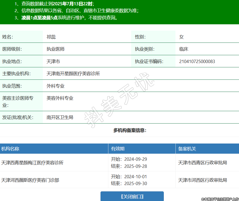 姓名:祁蕊性別:女醫(yī)師級別:執(zhí)業(yè)醫(yī)師執(zhí)業(yè)類別:臨床執(zhí)業(yè)地點:天津市執(zhí)業(yè)證書編碼:210410725000083主要執(zhí)業(yè)機構:天津南開星顏醫(yī)療美容診所執(zhí)業(yè)范圍:外科專業(yè)美容主診醫(yī)師專業(yè):美容外科專業(yè)發(fā)證(批準)機關:南開區(qū)衛(wèi)生局多機構備案信息:機構名稱 有效期 備案機關 天津西青星顏梅江醫(yī)療美容診所 開始:2024-09-29結束:2025-09-28天津市西青區(qū)行政審批局 天津河西薇斯醫(yī)療美容門診部 開始:2024-10-01結束:2025-09-30天津市河西區(qū)行政審批局 -