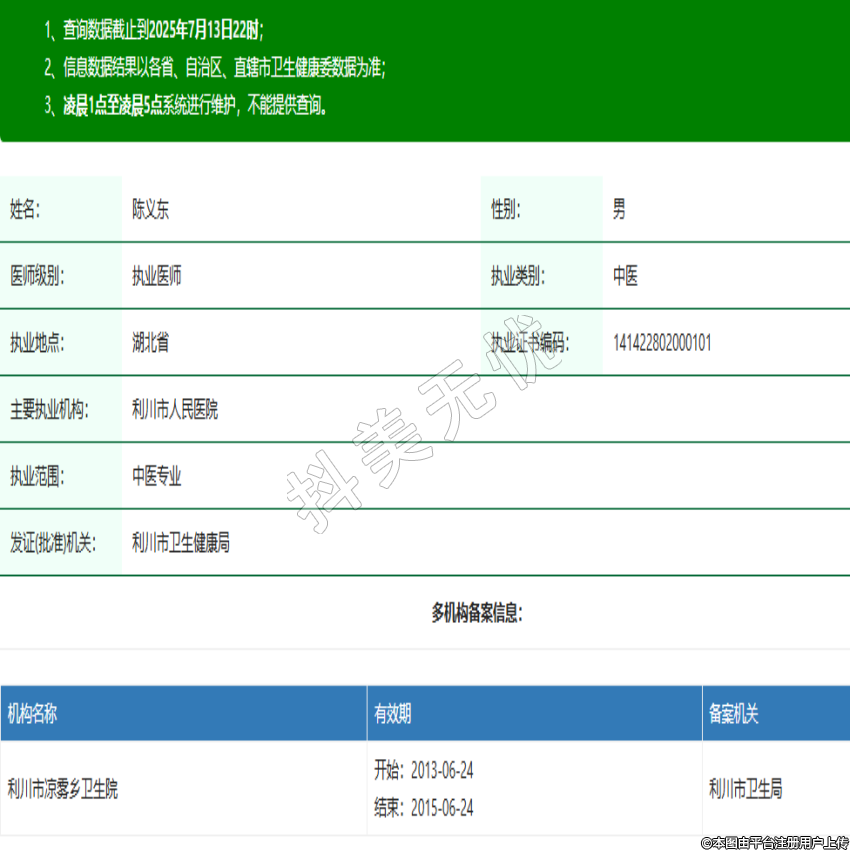 姓名:陳義東性別:男醫(yī)師級別:執(zhí)業(yè)醫(yī)師執(zhí)業(yè)類別:中醫(yī)執(zhí)業(yè)地點:湖北省執(zhí)業(yè)證書編碼:141422802000101主要執(zhí)業(yè)機構(gòu):利川市人民醫(yī)院執(zhí)業(yè)范圍:中醫(yī)專業(yè)發(fā)證(批準)機關(guān):利川市衛(wèi)生健康局