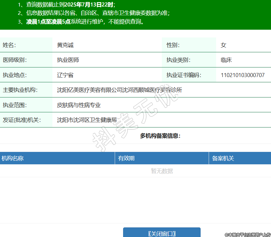 姓名:黃克誠性別:女醫(yī)師級別:執(zhí)業(yè)醫(yī)師執(zhí)業(yè)類別:臨床執(zhí)業(yè)地點:遼寧省執(zhí)業(yè)證書編碼:110210103000707主要執(zhí)業(yè)機(jī)構(gòu):沈陽億美醫(yī)療美容有限公司沈河西順城醫(yī)療美容診所執(zhí)業(yè)范圍:皮膚病與性病專業(yè)發(fā)證(批準(zhǔn))機(jī)關(guān):沈陽市沈河區(qū)衛(wèi)生健康局 -
