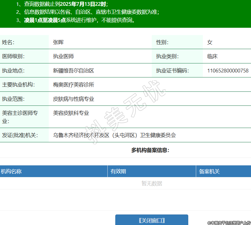 姓名:張暉性別:女醫(yī)師級別:執(zhí)業(yè)醫(yī)師執(zhí)業(yè)類別:臨床執(zhí)業(yè)地點:新疆維吾爾自治區(qū)執(zhí)業(yè)證書編碼:110652800000758主要執(zhí)業(yè)機構(gòu):梅奧醫(yī)療美容診所執(zhí)業(yè)范圍:皮膚病與性病專業(yè)美容主診醫(yī)師專業(yè):美容皮膚科專業(yè)發(fā)證(批準)機關(guān):烏魯木齊經(jīng)濟技術(shù)開發(fā)區(qū)(頭屯河區(qū))衛(wèi)生健康委員會 -