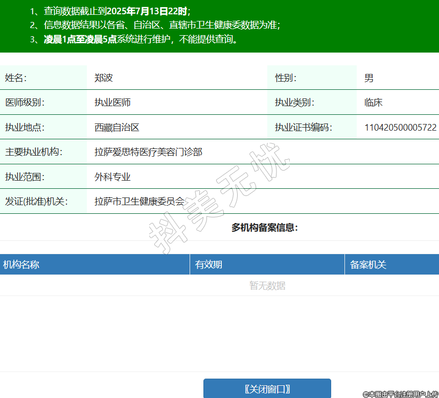 姓名:鄭波性別:男醫(yī)師級(jí)別:執(zhí)業(yè)醫(yī)師執(zhí)業(yè)類別:臨床執(zhí)業(yè)地點(diǎn):西藏自治區(qū)執(zhí)業(yè)證書編碼:110420500005722主要執(zhí)業(yè)機(jī)構(gòu):拉薩愛思特醫(yī)療美容門診部執(zhí)業(yè)范圍:外科專業(yè)發(fā)證(批準(zhǔn))機(jī)關(guān):拉薩市衛(wèi)生健康委員會(huì)