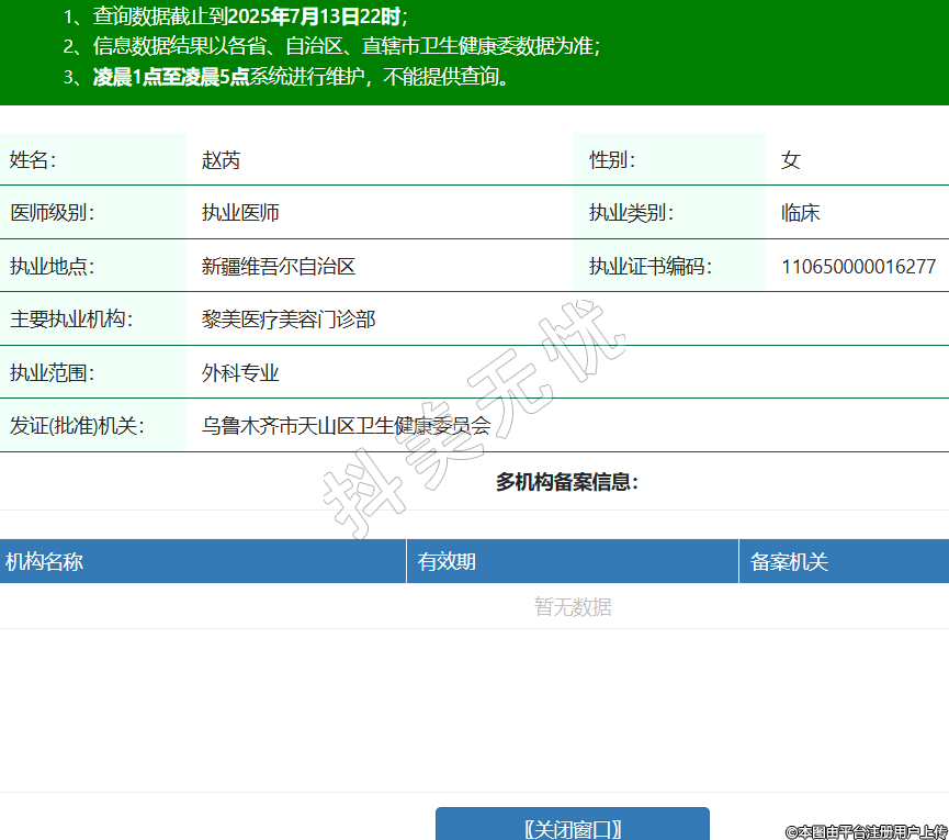 姓名:趙芮性別:女醫(yī)師級(jí)別:執(zhí)業(yè)醫(yī)師執(zhí)業(yè)類別:臨床執(zhí)業(yè)地點(diǎn):新疆維吾爾自治區(qū)執(zhí)業(yè)證書(shū)編碼:110650000016277主要執(zhí)業(yè)機(jī)構(gòu):黎美醫(yī)療美容門(mén)診部執(zhí)業(yè)范圍:外科專業(yè)發(fā)證(批準(zhǔn))機(jī)關(guān):烏魯木齊市天山區(qū)衛(wèi)生健康委員會(huì) -