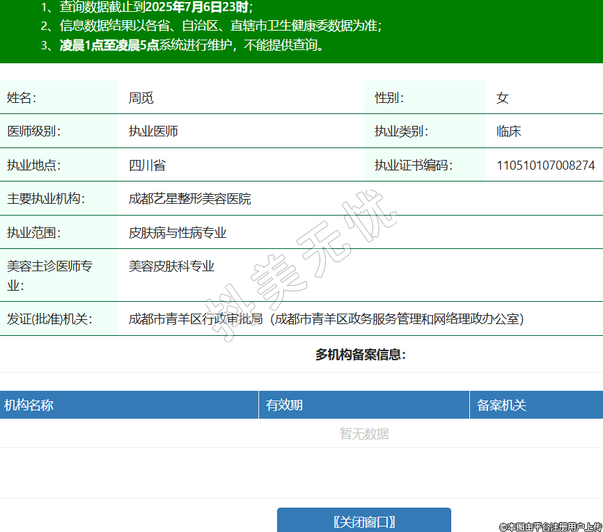 姓名:周覓性別:女醫(yī)師級(jí)別:執(zhí)業(yè)醫(yī)師執(zhí)業(yè)類別:臨床執(zhí)業(yè)地點(diǎn):四川省執(zhí)業(yè)證書編碼:110510107008274主要執(zhí)業(yè)機(jī)構(gòu):成都藝星整形美容醫(yī)院執(zhí)業(yè)范圍:皮膚病與性病專業(yè)美容主診醫(yī)師專業(yè):美容皮膚科專業(yè)發(fā)證(批準(zhǔn))機(jī)關(guān):成都市青羊區(qū)行政審批局(成都市青羊區(qū)政務(wù)服務(wù)管理和網(wǎng)絡(luò)理政辦公室) -