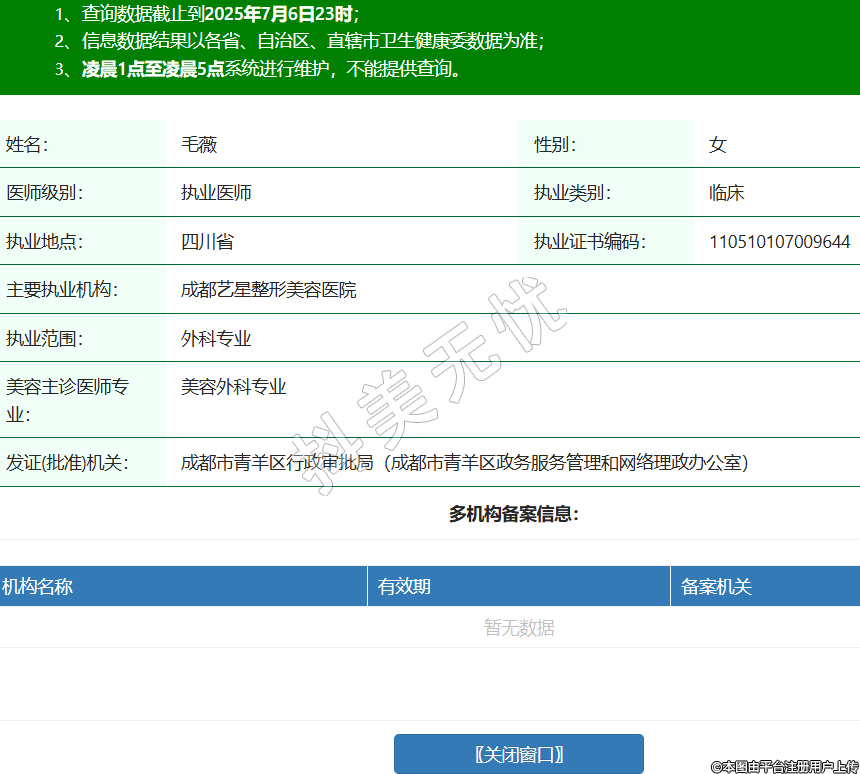 姓名:毛薇性別:女醫(yī)師級(jí)別:執(zhí)業(yè)醫(yī)師執(zhí)業(yè)類(lèi)別:臨床執(zhí)業(yè)地點(diǎn):四川省執(zhí)業(yè)證書(shū)編碼:110510107009644主要執(zhí)業(yè)機(jī)構(gòu):成都藝星整形美容醫(yī)院執(zhí)業(yè)范圍:外科專(zhuān)業(yè)美容主診醫(yī)師專(zhuān)業(yè):美容外科專(zhuān)業(yè)發(fā)證(批準(zhǔn))機(jī)關(guān):成都市青羊區(qū)行政審批局(成都市青羊區(qū)政務(wù)服務(wù)管理和網(wǎng)絡(luò)理政辦公室) -