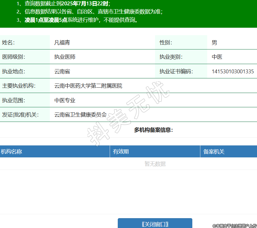 姓名:凡福青性別:男醫(yī)師級別:執(zhí)業(yè)醫(yī)師執(zhí)業(yè)類別:中醫(yī)執(zhí)業(yè)地點:云南省執(zhí)業(yè)證書編碼:141530103001335主要執(zhí)業(yè)機(jī)構(gòu):云南中醫(yī)藥大學(xué)第二附屬醫(yī)院執(zhí)業(yè)范圍:中醫(yī)專業(yè)發(fā)證(批準(zhǔn))機(jī)關(guān):云南省衛(wèi)生健康委員會 -