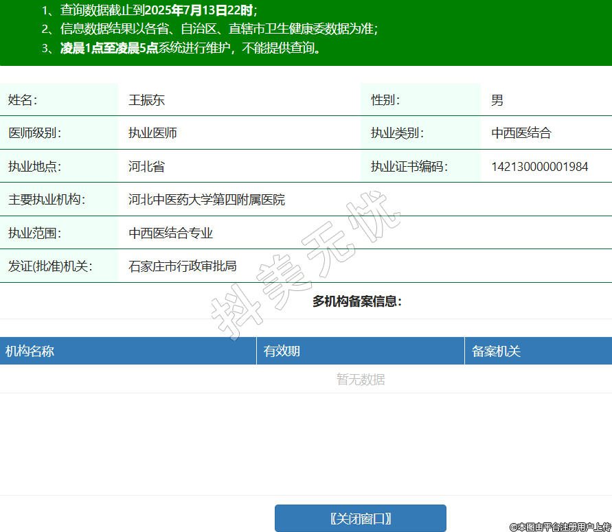 姓名:王振東性別:男醫(yī)師級別:執(zhí)業(yè)醫(yī)師執(zhí)業(yè)類別:中西醫(yī)結合執(zhí)業(yè)地點:河北省執(zhí)業(yè)證書編碼:142130000001984主要執(zhí)業(yè)機構:河北中醫(yī)藥大學第四附屬醫(yī)院執(zhí)業(yè)范圍:中西醫(yī)結合專業(yè)發(fā)證(批準)機關:石家莊市行政審批局 -