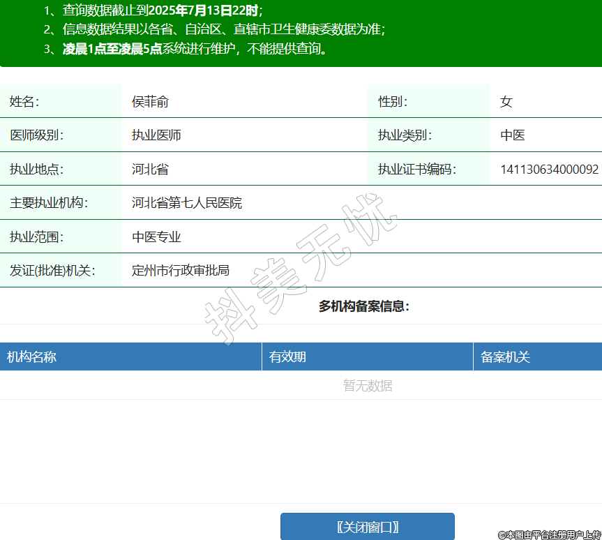 姓名:侯菲俞性別:女醫(yī)師級別:執(zhí)業(yè)醫(yī)師執(zhí)業(yè)類別:中醫(yī)執(zhí)業(yè)地點(diǎn):河北省執(zhí)業(yè)證書編碼:141130634000092主要執(zhí)業(yè)機(jī)構(gòu):河北省第七人民醫(yī)院執(zhí)業(yè)范圍:中醫(yī)專業(yè)發(fā)證(批準(zhǔn))機(jī)關(guān):定州市行政審批局 -