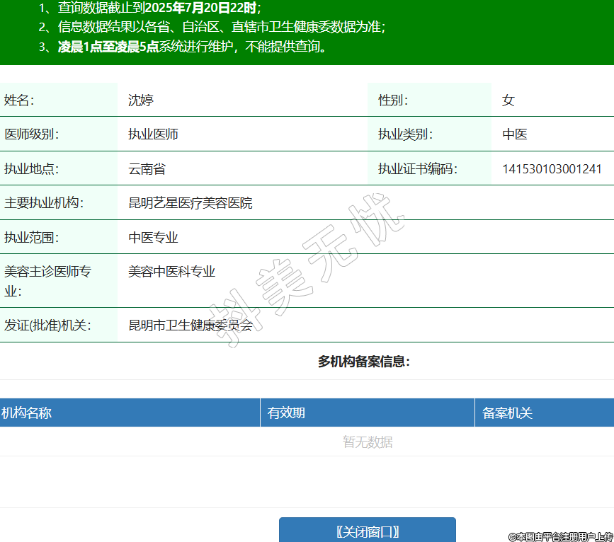 姓名:沈婷性別:女醫(yī)師級(jí)別:執(zhí)業(yè)醫(yī)師執(zhí)業(yè)類(lèi)別:中醫(yī)執(zhí)業(yè)地點(diǎn):云南省執(zhí)業(yè)證書(shū)編碼:141530103001241主要執(zhí)業(yè)機(jī)構(gòu):昆明藝星醫(yī)療美容醫(yī)院執(zhí)業(yè)范圍:中醫(yī)專(zhuān)業(yè)美容主診醫(yī)師專(zhuān)業(yè):美容中醫(yī)科專(zhuān)業(yè)發(fā)證(批準(zhǔn))機(jī)關(guān):昆明市衛(wèi)生健康委員會(huì) -