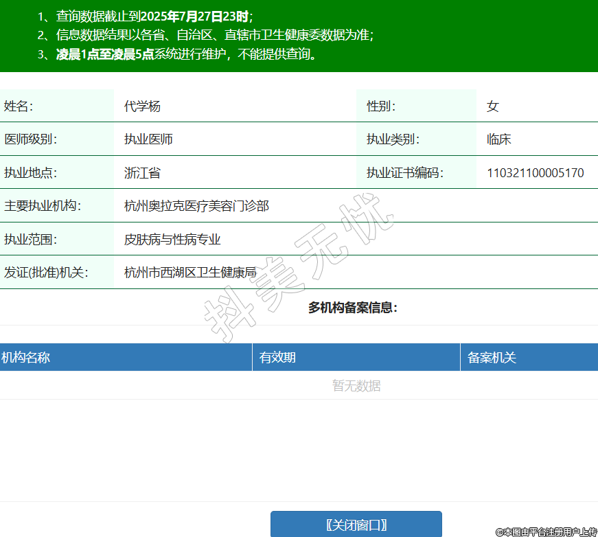 姓名:代學楊性別:女醫(yī)師級別:執(zhí)業(yè)醫(yī)師執(zhí)業(yè)類別:臨床執(zhí)業(yè)地點:浙江省執(zhí)業(yè)證書編碼:110321100005170主要執(zhí)業(yè)機構:杭州奧拉克醫(yī)療美容門診部執(zhí)業(yè)范圍:皮膚病與性病專業(yè)發(fā)證(批準)機關:杭州市西湖區(qū)衛(wèi)生健康局 -