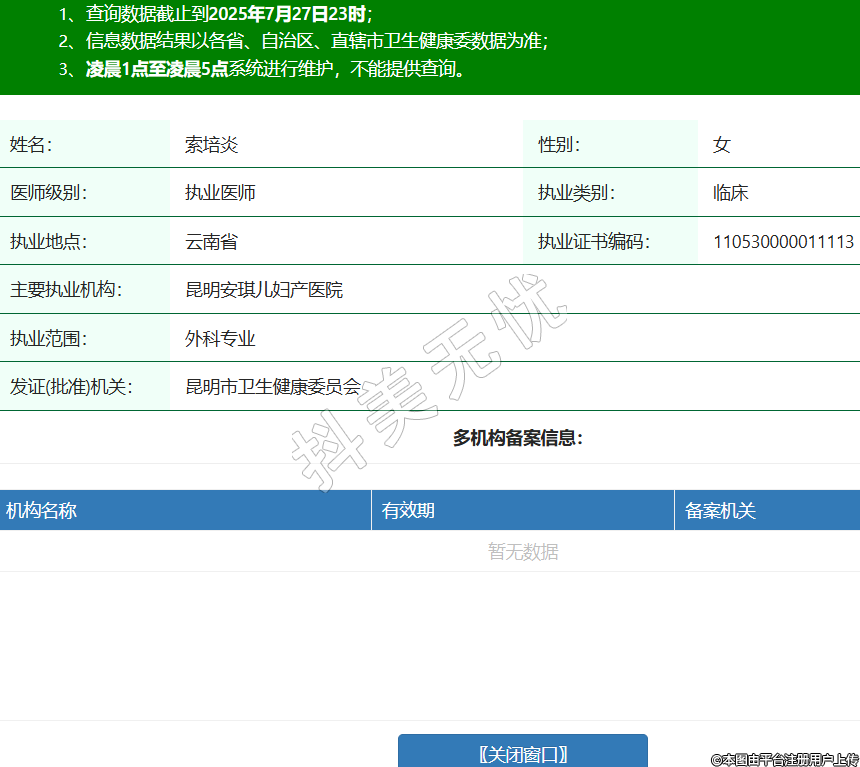姓名:索培炎性別:女醫(yī)師級別:執(zhí)業(yè)醫(yī)師執(zhí)業(yè)類別:臨床執(zhí)業(yè)地點:云南省執(zhí)業(yè)證書編碼:110530000011113主要執(zhí)業(yè)機構:昆明安琪兒婦產醫(yī)院執(zhí)業(yè)范圍:外科專業(yè)發(fā)證(批準)機關:昆明市衛(wèi)生健康委員會 -