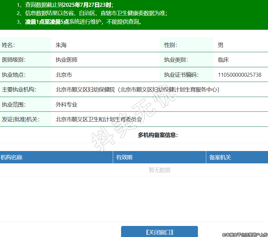 姓名:朱海性別:男醫(yī)師級(jí)別:執(zhí)業(yè)醫(yī)師執(zhí)業(yè)類別:臨床執(zhí)業(yè)地點(diǎn):北京市執(zhí)業(yè)證書編碼:110500000025738主要執(zhí)業(yè)機(jī)構(gòu):北京市順義區(qū)婦幼保健院(北京市順義區(qū)婦幼保健計(jì)劃生育服務(wù)中心)執(zhí)業(yè)范圍:外科專業(yè)發(fā)證(批準(zhǔn))機(jī)關(guān):北京市順義區(qū)衛(wèi)生和計(jì)劃生育委員會(huì)