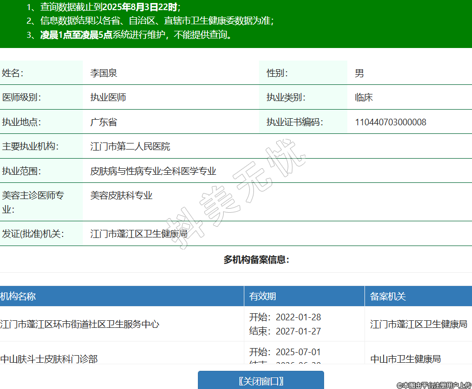 機(jī)構(gòu)名稱 有效期 備案機(jī)關(guān) 江門市蓬江區(qū)環(huán)市街道社區(qū)衛(wèi)生服務(wù)中心 開始:2022-01-28結(jié)束:2027-01-27江門市蓬江區(qū)衛(wèi)生健康局 中山膚斗士皮膚科門診部 開始:2025-07-01結(jié)束:2026-06-30中山市衛(wèi)生健康局 -