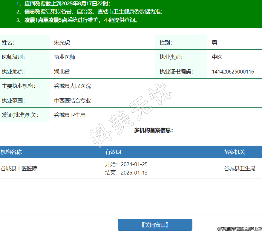 機構(gòu)名稱 有效期 備案機關(guān) 谷城縣中醫(yī)醫(yī)院 開始:2024-01-25結(jié)束:2026-01-13谷城縣衛(wèi)生局 -