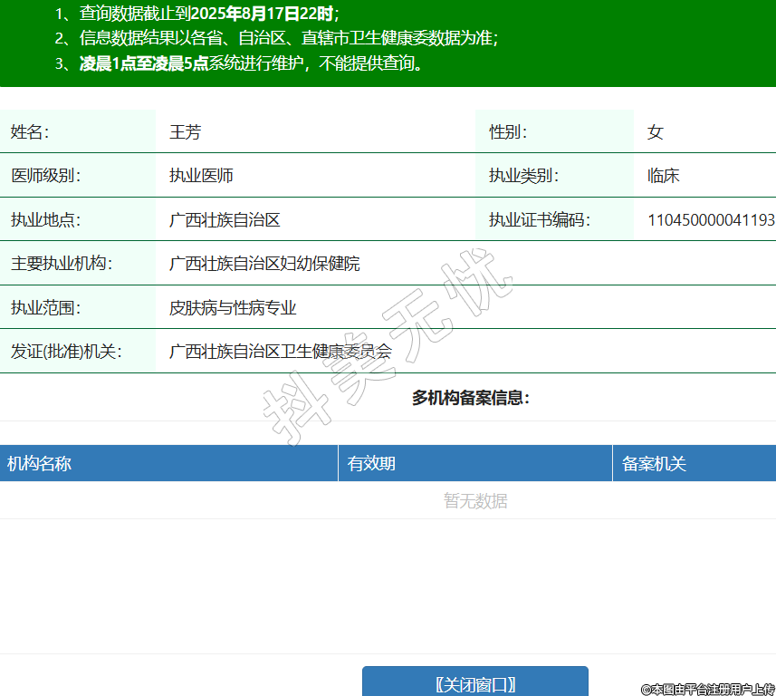 姓名:王芳性別:女醫(yī)師級別:執(zhí)業(yè)醫(yī)師執(zhí)業(yè)類別:臨床執(zhí)業(yè)地點:廣西壯族自治區(qū)執(zhí)業(yè)證書編碼:110450000041193主要執(zhí)業(yè)機構(gòu):廣西壯族自治區(qū)婦幼保健院執(zhí)業(yè)范圍:皮膚病與性病專業(yè)發(fā)證(批準(zhǔn))機關(guān):廣西壯族自治區(qū)衛(wèi)生健康委員會 -
